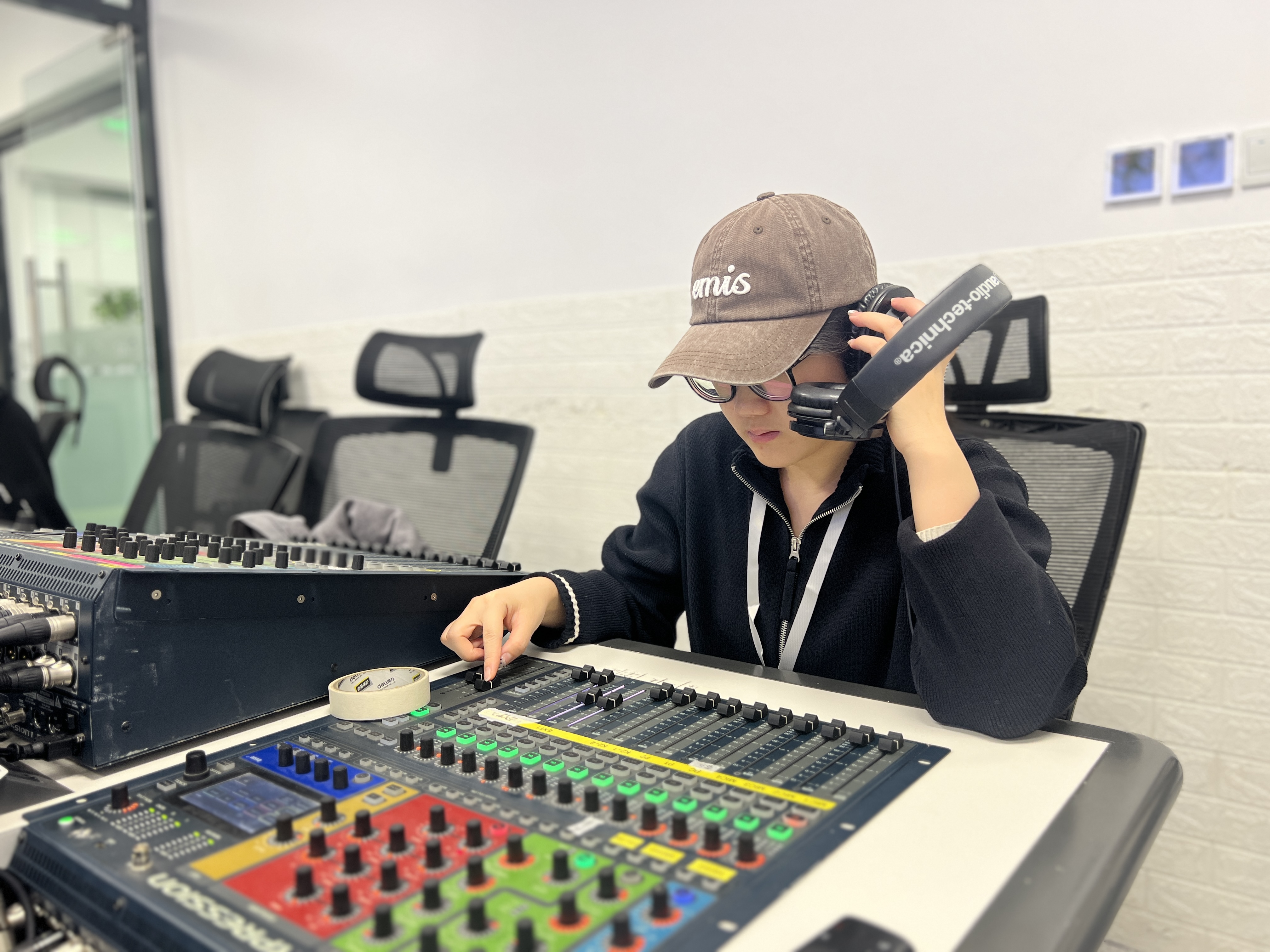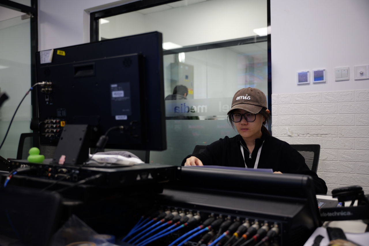 在专业导师的指导下,张文钰同学系统学习了大型赛事转播的标准作业流程。在导播课程中,她掌握了多机位画面切换的技巧与节奏把控;在音频调控训练中,她熟悉了现场声收录与混音处理的专业技术;在放像操作环节,她学会了即时回放与特效画面的制作要领;在字幕制作课程中,她掌握了实时信息更新与图文包装的规范操作。通过轮岗实训,她对赛事转播全链路建立了系统认知,为后续的实战工作奠定了坚实基础。