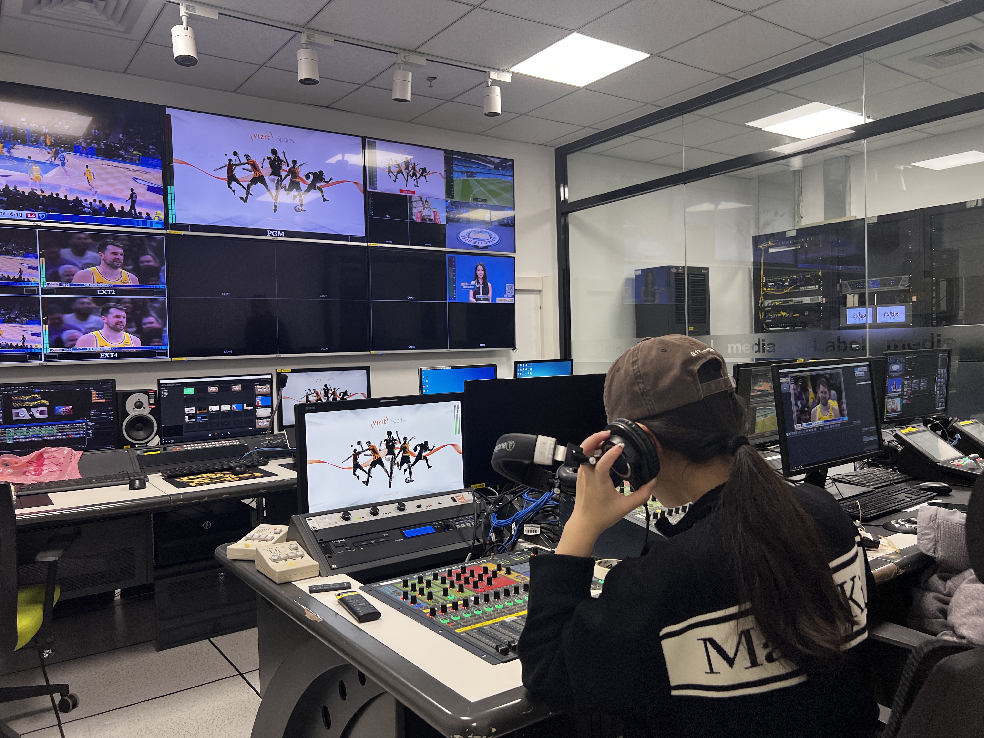 除了全运会赛事,张文钰同学还参与了NBA、英超等国际顶级赛事的转播辅助工作。从赛前流程单与串联单的细化优化,到现场设备的最终校验调试;从导播间内精准传递指令、流畅完成画面切换,到演播间里平稳操控镜头、实时监听音频质量,将培训与模拟中的所学所悟灵活转化为实战能力,全程紧跟专业团队节奏高效推进工作,近距离感受国家级赛事转播的严苛标准与专业氛围。这些经历让她对不同类型体育赛事的转播特点有了更全面的认识,也让她接触到国际先进的转播理念和技术标准。在实践中,她特别注意观察和学习专业团队的工作模式,将课堂上学到的理论知识与行业实践进行对比验证,不断提升自己的专业认知水平。