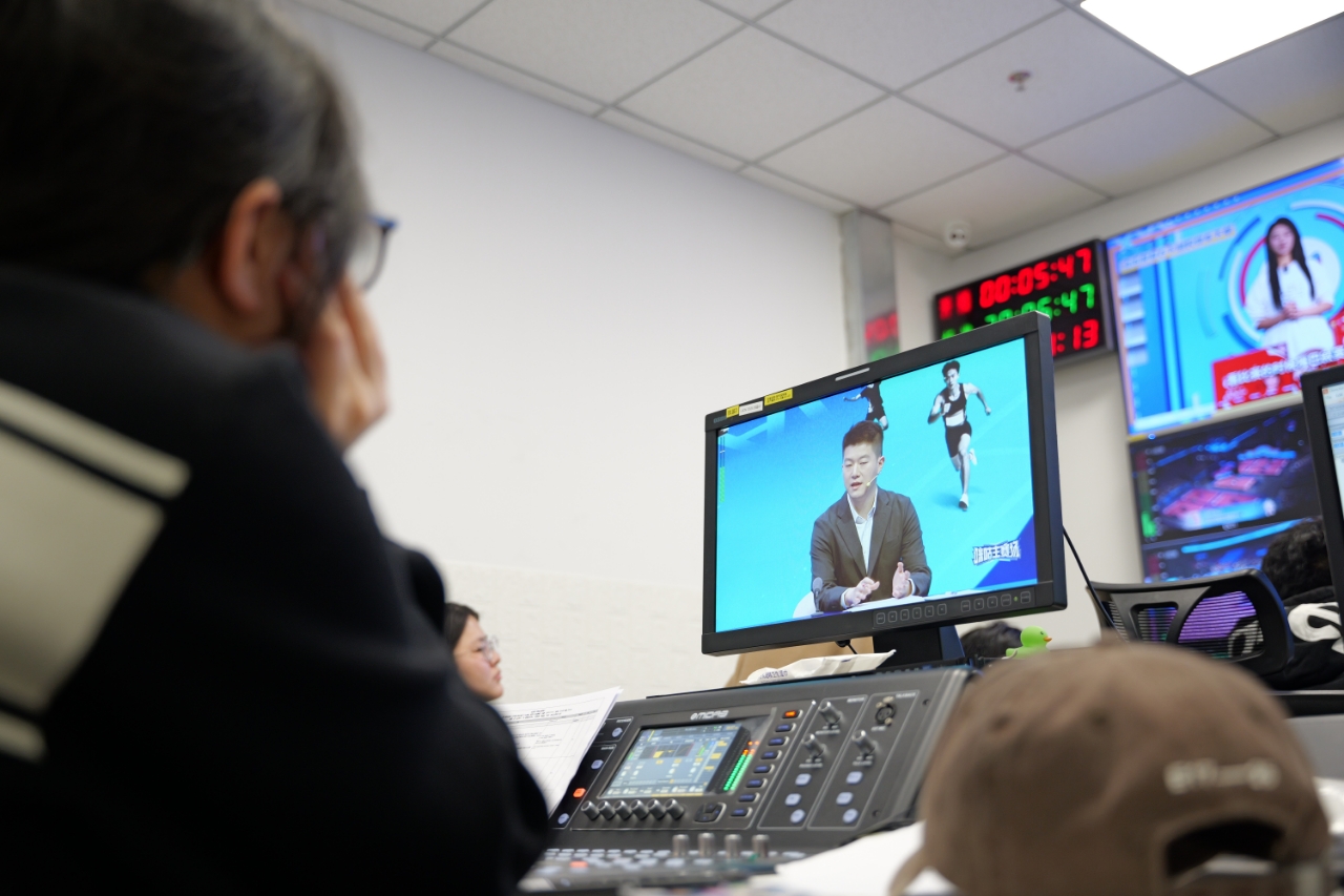 通过严格考核后,张文钰同学正式投入到第十五届全运会的赛事转播工作中。在实战阶段,她主要负责导播辅助工作,包括指令传达、画面监看、流程跟进等重要任务。这些工作看似简单,实则要求极高的专注度和专业度。在快节奏的直播环境中,她需要时刻保持清醒的头脑,准确执行导播指令,确保转播流程的顺畅进行。