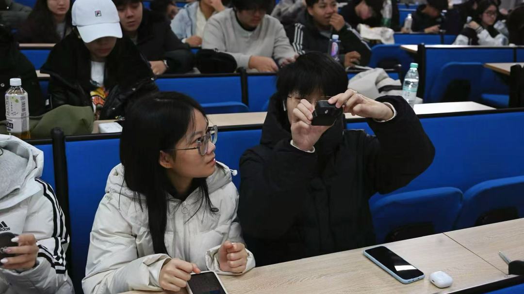 活动现场的实操体验区,成为同学们最爱的“打卡地”。大家手持大疆pocket action6 nano,在活动现场开启沉浸式拍摄——无论是大咖分享时的精彩瞬间,还是机器狗互动的趣味画面,这款轻巧便携的设备都能轻松捕捉。